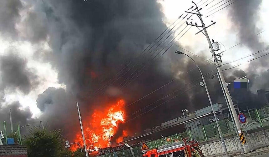 - 상황: 공장 내부에서 폭발 후 대형 화재 발생